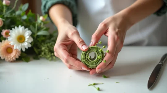 Avant de composer, il est essentiel de maîtriser les gestes de base et de s’équiper correctement. Un bouquet réussi repose sur une architecture technique solide : la façon dont les tiges sont maintenues, leur angle d’insertion et leur équilibre dans le contenant déterminent la longévité et l’esthétique finale de l’arrangement.